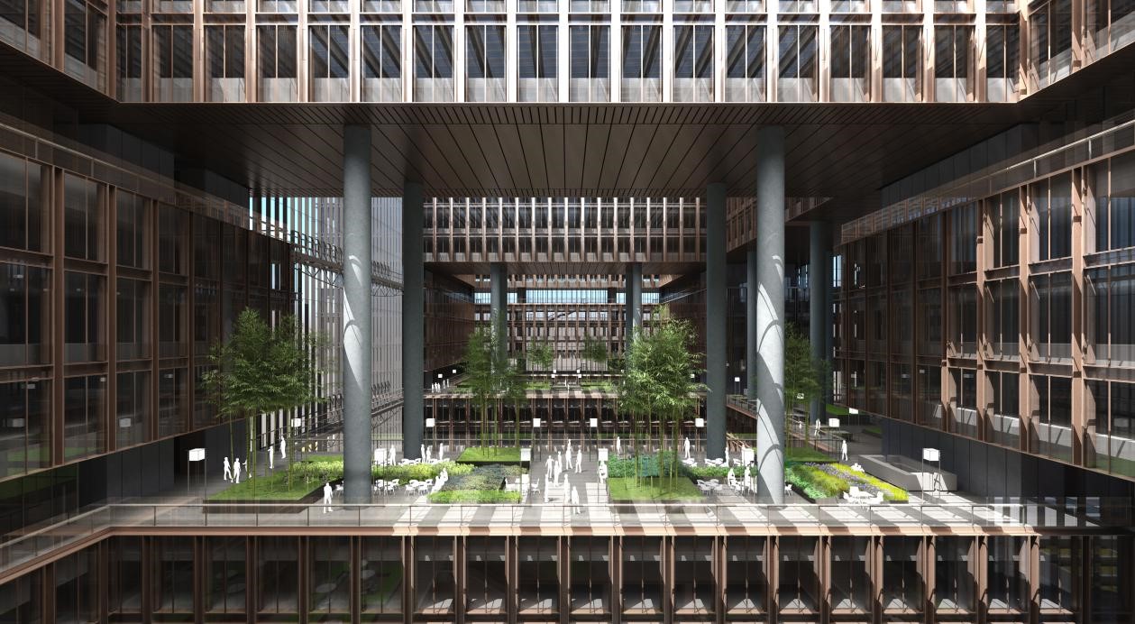80米高的挑空大廳、7個采光中庭,使亞洲金融大廈內(nèi)所有工作區(qū)能享受最為均衡的自然采光和開闊視野空間;10處空中花園,分別種植熱帶、亞熱帶植物等,營造兼具藝術(shù)性和實用性的綠色多元復(fù)合活力商務(wù)空間;雙層內(nèi)呼吸式玻璃幕墻,配合智能電動遮陽系統(tǒng)和通風(fēng)換氣系統(tǒng)等,在實現(xiàn)節(jié)能效果、提升隔聲性能的同時,保障恒溫恒濕的辦公條件。