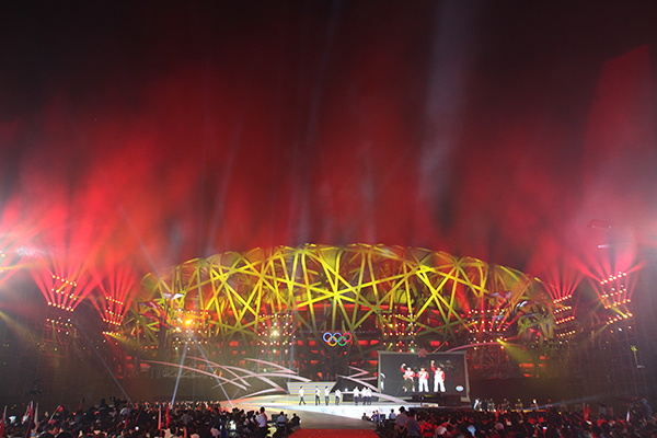 由國家體育總局和北京市政府主辦,北京電視臺承辦的“一路拼搏——慶祝中國奧運(yùn)代表團(tuán)凱旋主題晚會”于2012年9月3日晚在北京奧林匹公園中心區(qū)慶典廣場舉行。初秋的慶典廣場星光璀璨、明星云集,剛剛在第30屆倫敦夏季奧運(yùn)會上載譽(yù)而歸的林丹、易思玲、曹緣、陳一冰、張成龍、趙云蕾, 陳定、鄒市明、雷聲、李娜、蔡赟、傅海峰、張楠等13名奧運(yùn)冠軍集體亮相,不僅現(xiàn)場用精彩的才藝表演展現(xiàn)了奧運(yùn)冠軍的多才多藝,還講述了他們拼搏背后的成長故事,表達(dá)了對祖國和人民的感激之情。同時,成龍、譚晶、戴玉強(qiáng)、莫華倫、羽泉、朗朗、胡彥斌、齊秦、薩頂頂、李宇春、林妙可等演藝界明星鼎力助陣,用精彩的文藝演出為奧運(yùn)冠軍慶功。